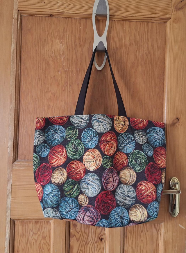 This yarn themed totebag and matching zip pouch is made by our in-house maker, Diane.